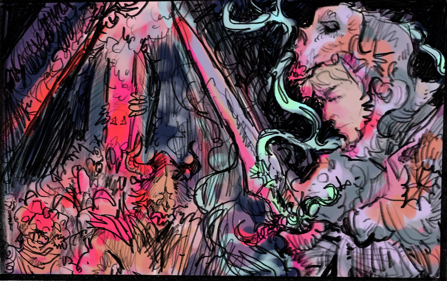 The jungle is dense filled with tall trees, vines and exotic plants. The air is thick with humidity and the sounds of wildlife. Monkeys swing from tree to tree, colorful birds fly overhead. But there lies a temple hidden deep in the jungle, filled with treasures and dangers. It is filled with traps and man eating plants. But the biggest danger by far is the tribal lizardmen who worship the temple as their god.