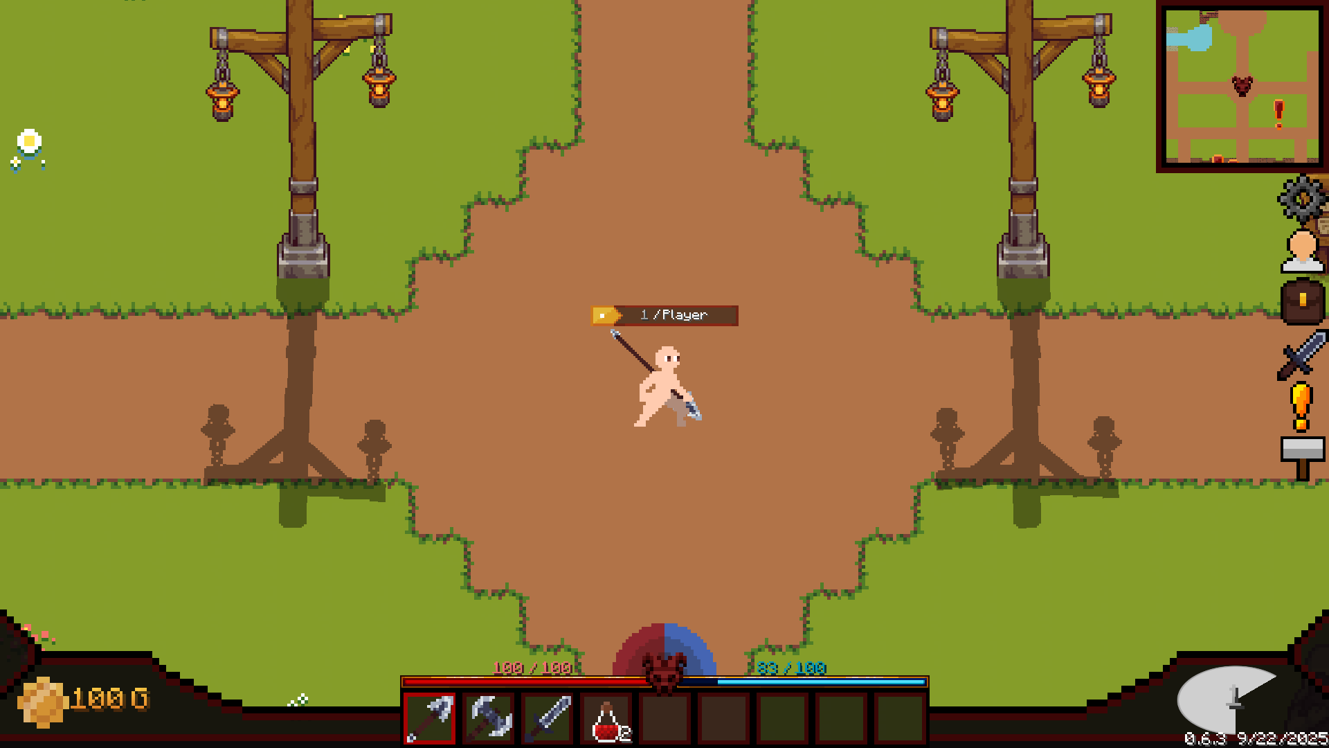 that I made at this time would be remade/changed later on. I created the player movement, attacking and the first iteration of the inventory and the visuals of the dungeons. The first iteration of the game was very different from what it is now, but the core gameplay was already there.